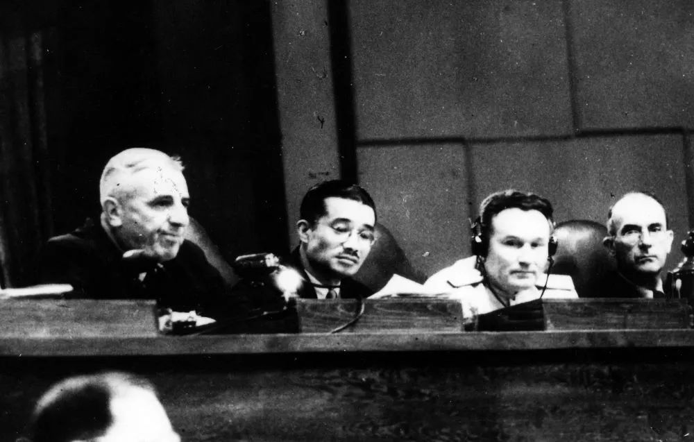 日本投降后,1946年5月3日至1948年11月12日,美、中、英、苏等11国在日本东京开设远东国际军事法庭,审判日本军国主义统治集团。梅汝璈作为中国法官赴东京参与审判,是该法庭11名法官中唯一的中国人。